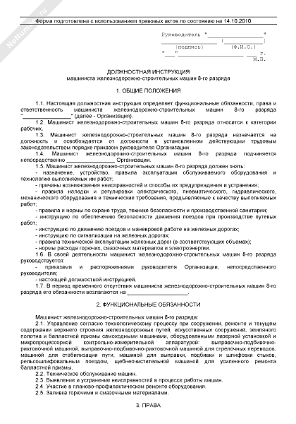 - 954Должностная инструкция машиниста железнодорожно-строительных машин 8-го разряда