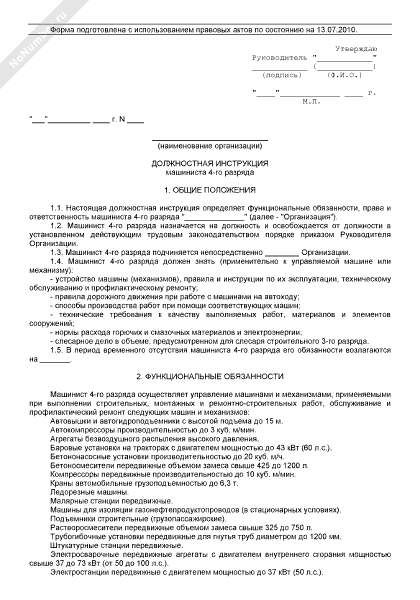 - 131Должностная инструкция машиниста 4-го разряда (для организаций, выполняющих строительные, монтажные и ремонтно-строительные работы)