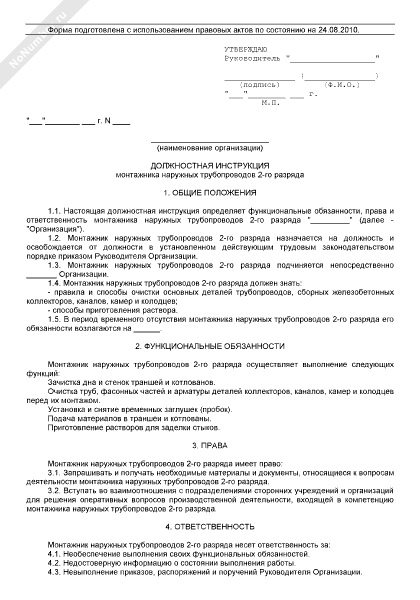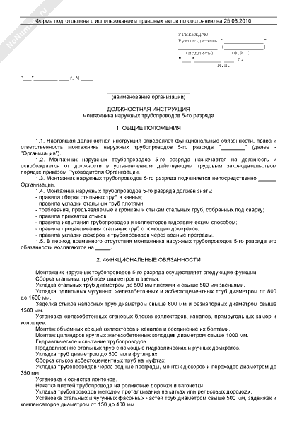 - 138Должностная инструкция монтажника наружных трубопроводов 2-го разряда