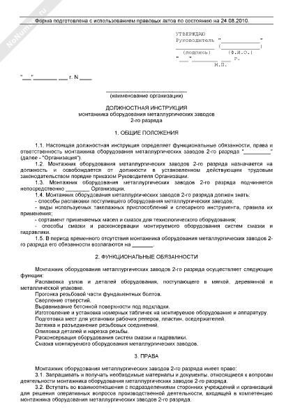 - 137Должностная инструкция монтажника оборудования металлургических заводов 2-го разряда
