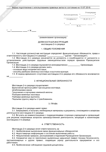 - 130Должностная инструкция дорожного рабочего 2-го разряда
