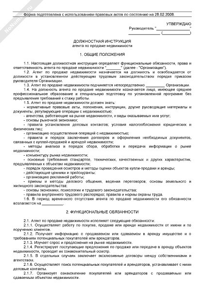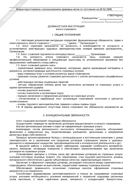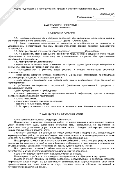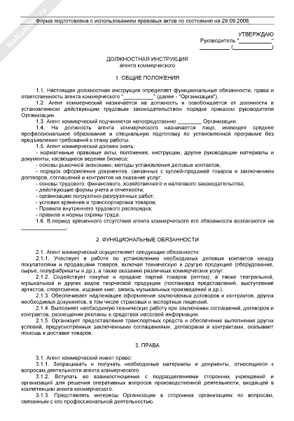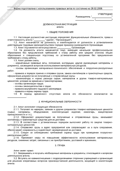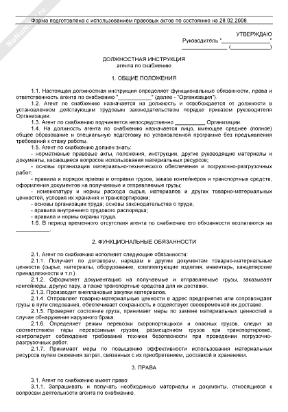 Должностная инструкция агента по снабжению (рекомендуемый образец заполнения)