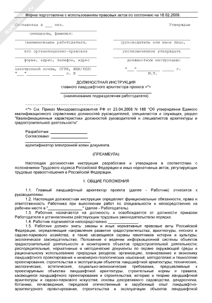 Должностная инструкция архитектора (рекомендуемый образец заполнения)