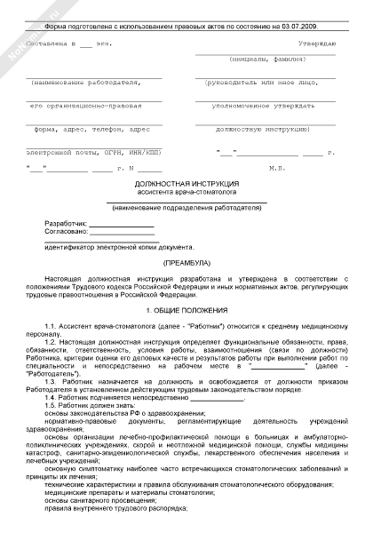 Должностная инструкция ассистента инспектора фонда (рекомендуемый образец заполнения)