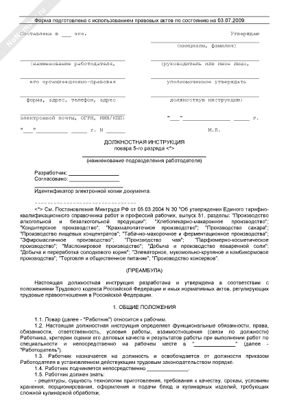Должностная инструкция повара 5-го разряда