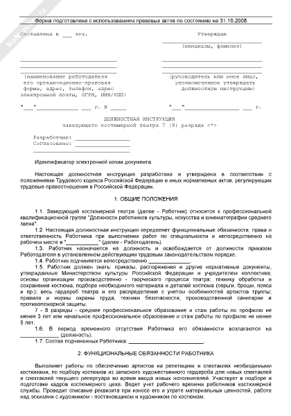 Должностная инструкция заведующего костюмерной театра 7 (8) разряда