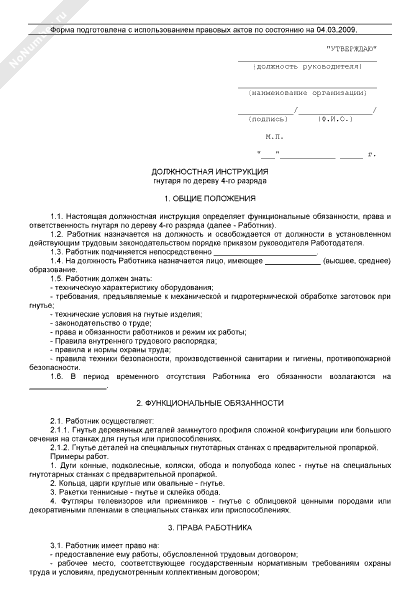 Должностная инструкция гнутаря по дереву 4-го разряда