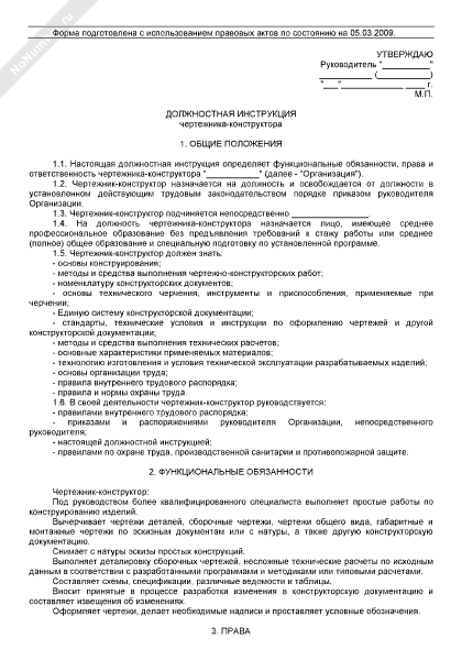 Должностная инструкция инженера-конструктора (рекомендуемый образец заполнения)