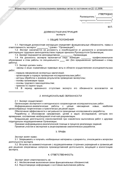 Должностная инструкция химика-эксперта медицинской организации (рекомендуемый образец заполнения)