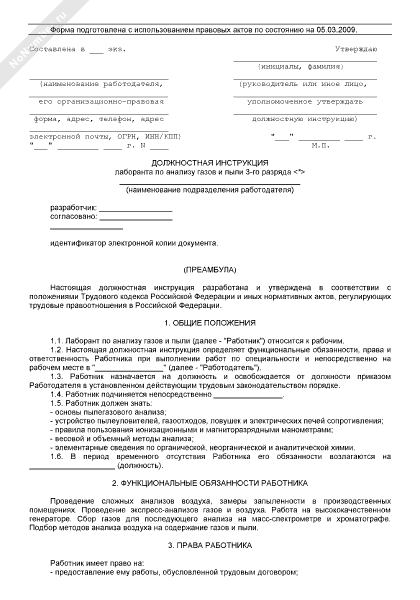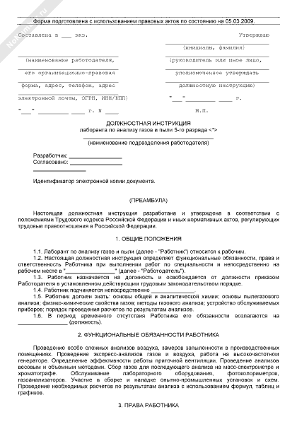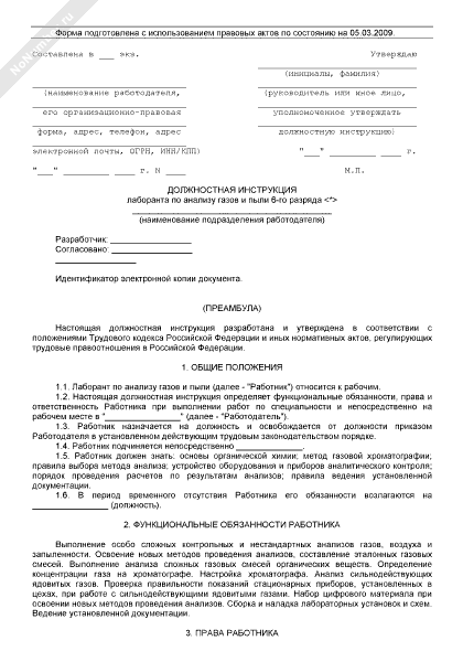 Должностная инструкция лаборанта по анализу газов и пыли 4-го разряда (рекомендуемый образец заполнения)