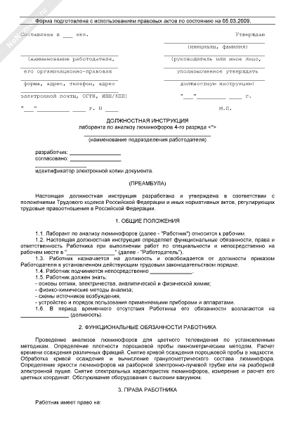 Должностная инструкция лаборанта по анализу люминофоров 4-го разряда