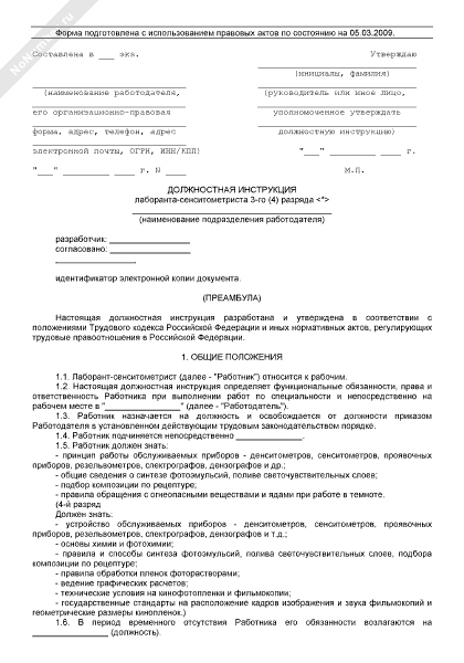 Должностная инструкция лаборанта-сенситометриста 3-го (4) разряда