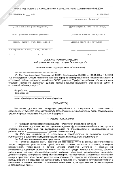 Должностная инструкция лаборанта-рентгеноструктурщика 2-го разряда