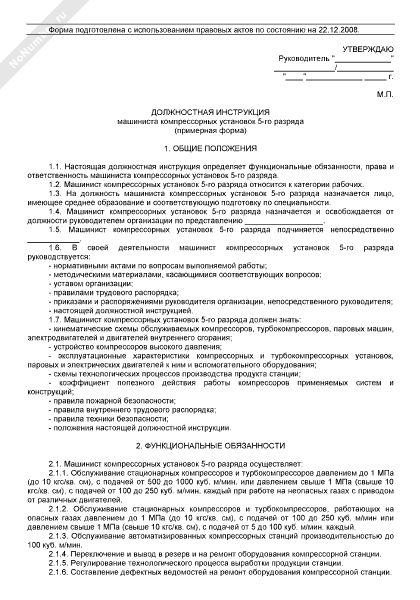 Должностная инструкция машиниста компрессорных установок 5-го разряда