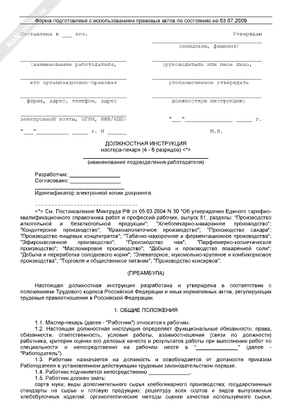 Должностная инструкция мастера-пекаря (4–6 разрядов)