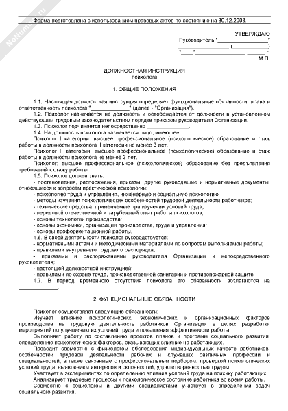 Должностная инструкция психолога