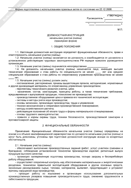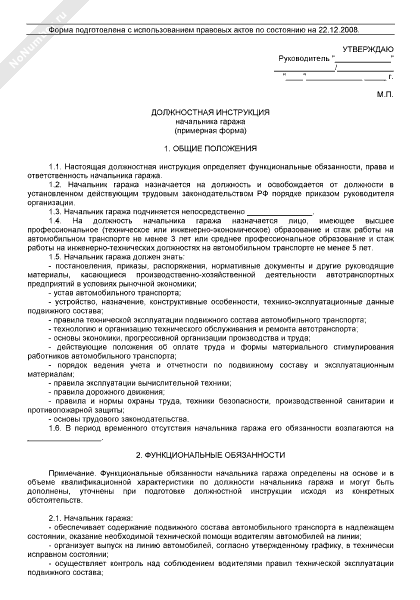 Должностная инструкция начальника депо (рекомендуемый образец заполнения)