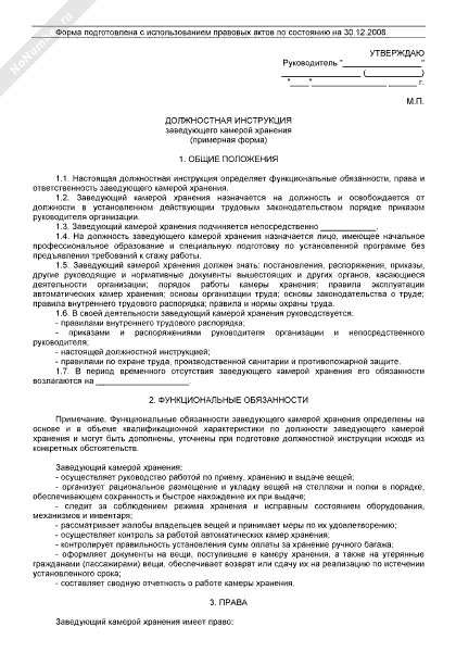 Должностная инструкция заведующего камерой хранения