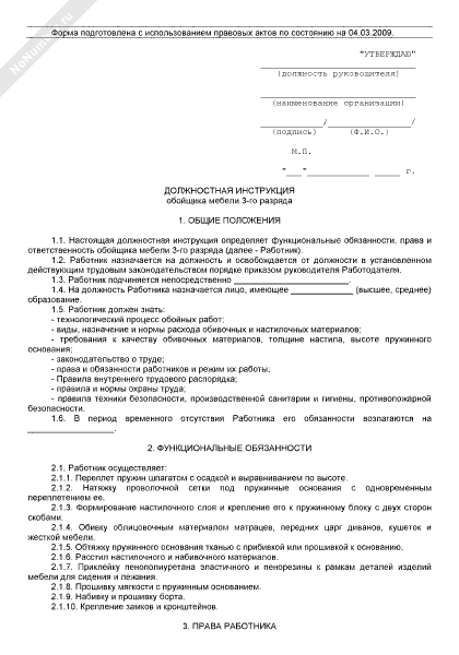 Должностная инструкция комплектовщика мебели 5-го разряда