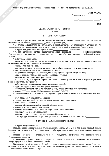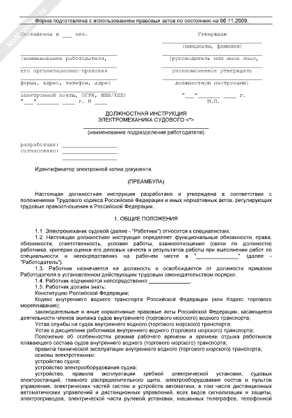 Должностная инструкция помощника электромеханика судового (рекомендуемый образец заполнения)