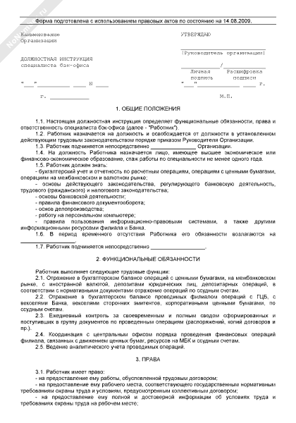 Должностная инструкция представлена в форматах DOC и RTF, поэтому откроется в любых версиях Microsoft Word или Open Office.