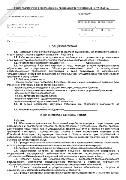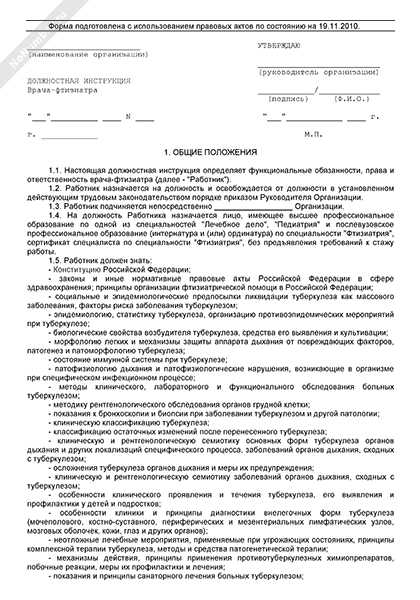 Должностная инструкция врача-фтизиатра (рекомендуемый образец заполнения)