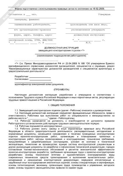 Должностная инструкция заведующего конструкторским отделом