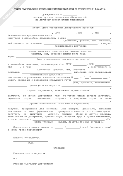 - 237Доверенность экспедитору для выполнения обязанностей по договору транспортной экспедиции