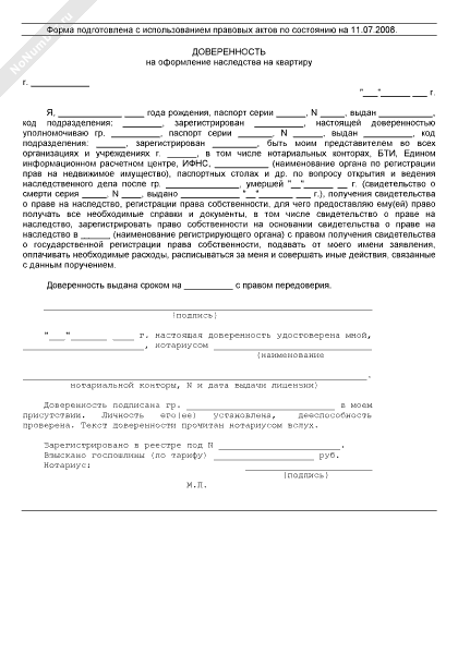 Доверенность на оформление наследства на квартиру