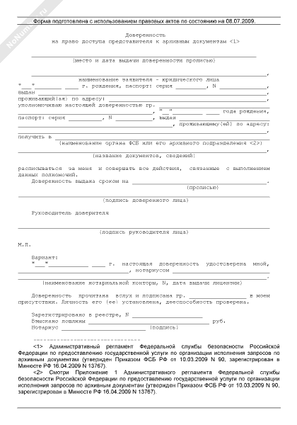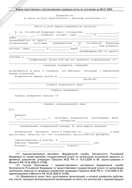 Доверенность на право доступа представителя к архивным документам