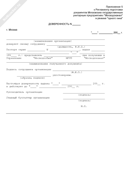 Доверенность на право получать документы в МГУП Мосводоканал