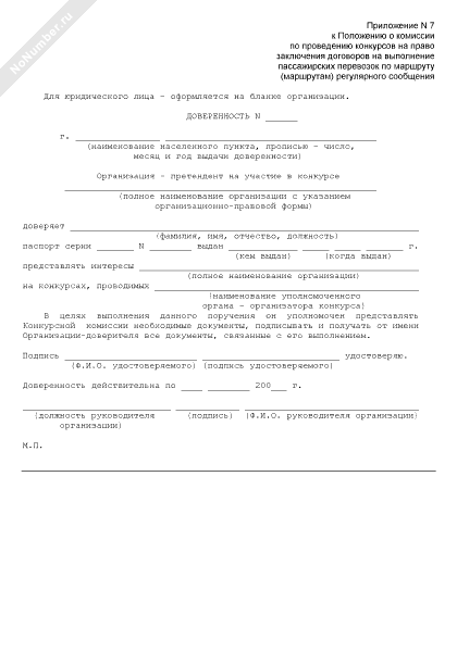 Доверенность представлять интересы на конкурсе на право заключения договора на выполнение пассажирских перевозок на территории городского округа Химки Московской области по маршруту (маршрутам) регулярного сообщения