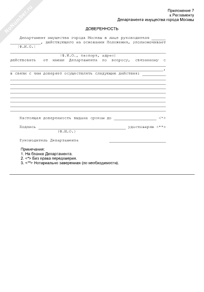 Доверенность Руководителя Департамента на представление интересов или совершение каких-либо действий конкретному должностному лицу (служащему) департамента