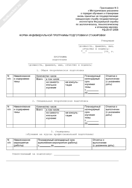 - 2009Форма индивидуальной программы подготовки и стажировки вновь принятого на государственную гражданскую службу государственного инспектора Федеральной службы по экологическому, технологическому и атомному надзору