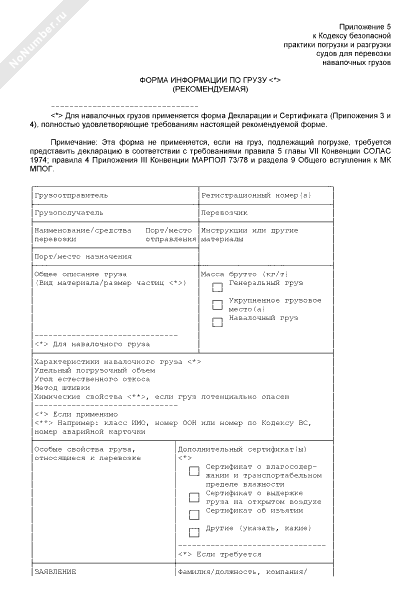 - 2012Форма информации по грузу, предназначенному для погрузки на суда, которая будет учтена при обеспечении безопасности его размещения и перевозки