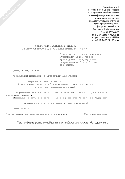 - 2011Форма информационного письма уполномоченного подразделения Банка России