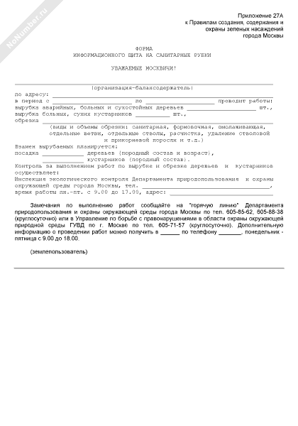 - 2014Форма информационного щита на санитарные рубки зеленых насаждений города Москвы