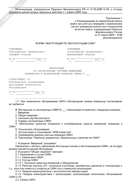 - 2010Форма инструкции по эксплуатации системы измерений количества и показателей качества нефти