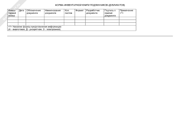 - 2007Форма инвентарной книги подлинников (дубликатов) технической документации (обязательная форма)