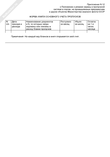 - 2099Форма книги основного учета пропусков на промышленных предприятиях и других объектах Министерства морского флота СССР