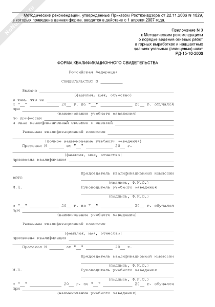 - 2083Форма квалификационного свидетельства на проведение огневых работ в горных выработках и надшахтных зданиях