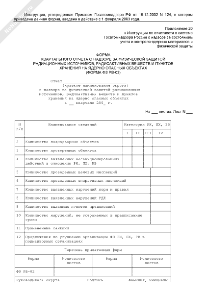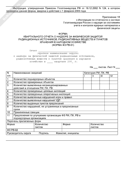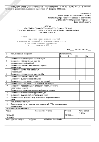 - 2092Форма квартального отчета о надзоре за физической защитой ядерных материалов. Форма № ФЗ ЯМ-01