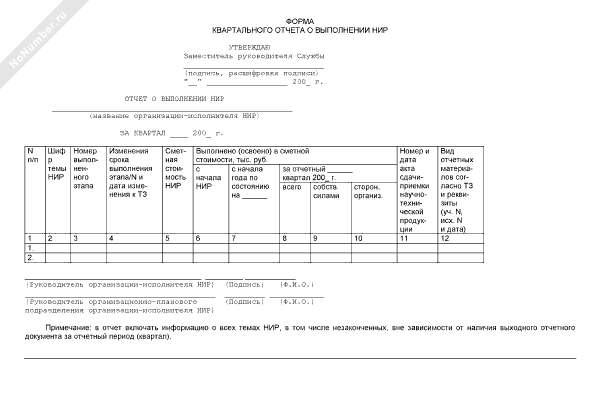 - 2091Форма квартального отчета о выполнении научно-исследовательской работы в Федеральной службе по экологическому, технологическому и атомному надзору
