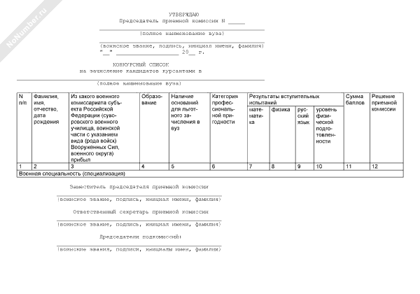 - 2133Форма конкурсного списка на зачисление кандидатов курсантами в высшее учебное заведение