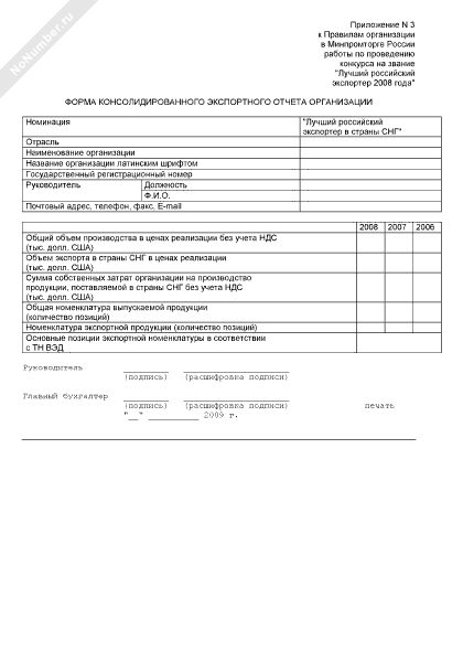 - 2135Форма консолидированного экспортного отчета организации для участия в конкурсе, проводимом Минпромторгом России на звание «Лучший российский экспортер 2008 года» в номинации «Лучший российский экспортер в страны СНГ»