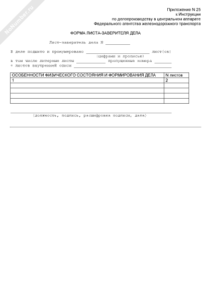 - 2178Форма листа-заверителя дела Федерального агентства железнодорожного транспорта