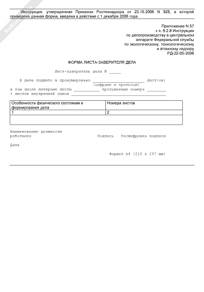 - 2179Форма листа-заверителя дела Федеральной службы по экологическому, технологическому и атомному надзору