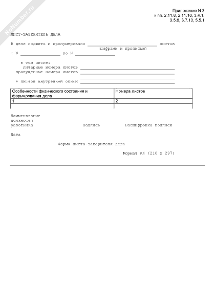- 2169Форма листа-заверителя дела для учета количества листов в деле