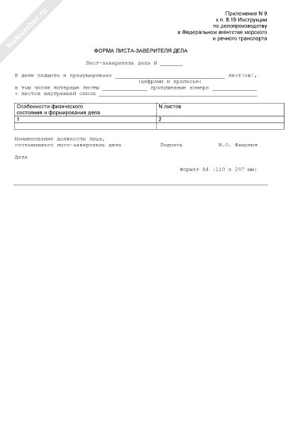 - 2174Форма листа-заверителя дела в центральном аппарате Минтранса РФ