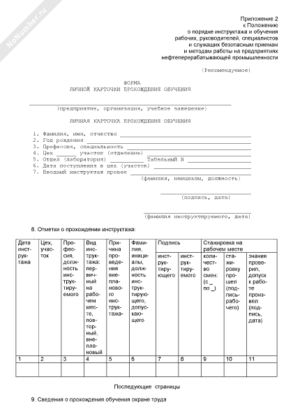 - 2190Форма личной карточки прохождения обучения по охране труда на предприятиях нефтеперерабатывающей промышленности